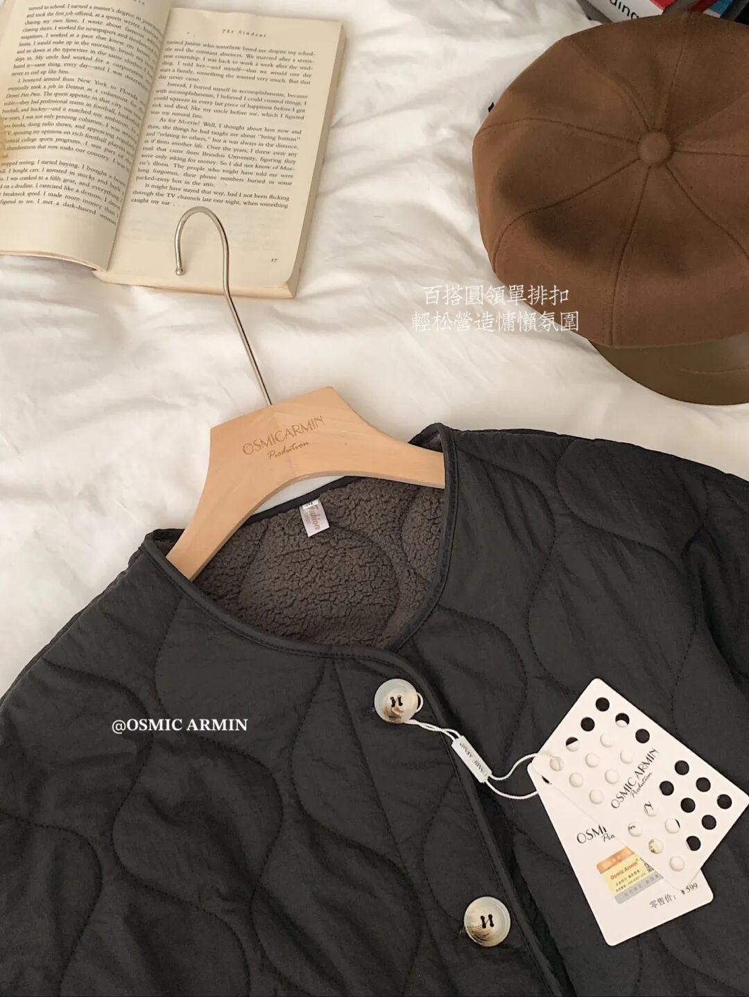 冬日必备韩系加绒加厚菱格棉服 是一款的加绒加厚菱格仿羊羔绒棉服 简直是冬季穿搭的宝藏单品 真的太好看了,韩女氛围感满满!
