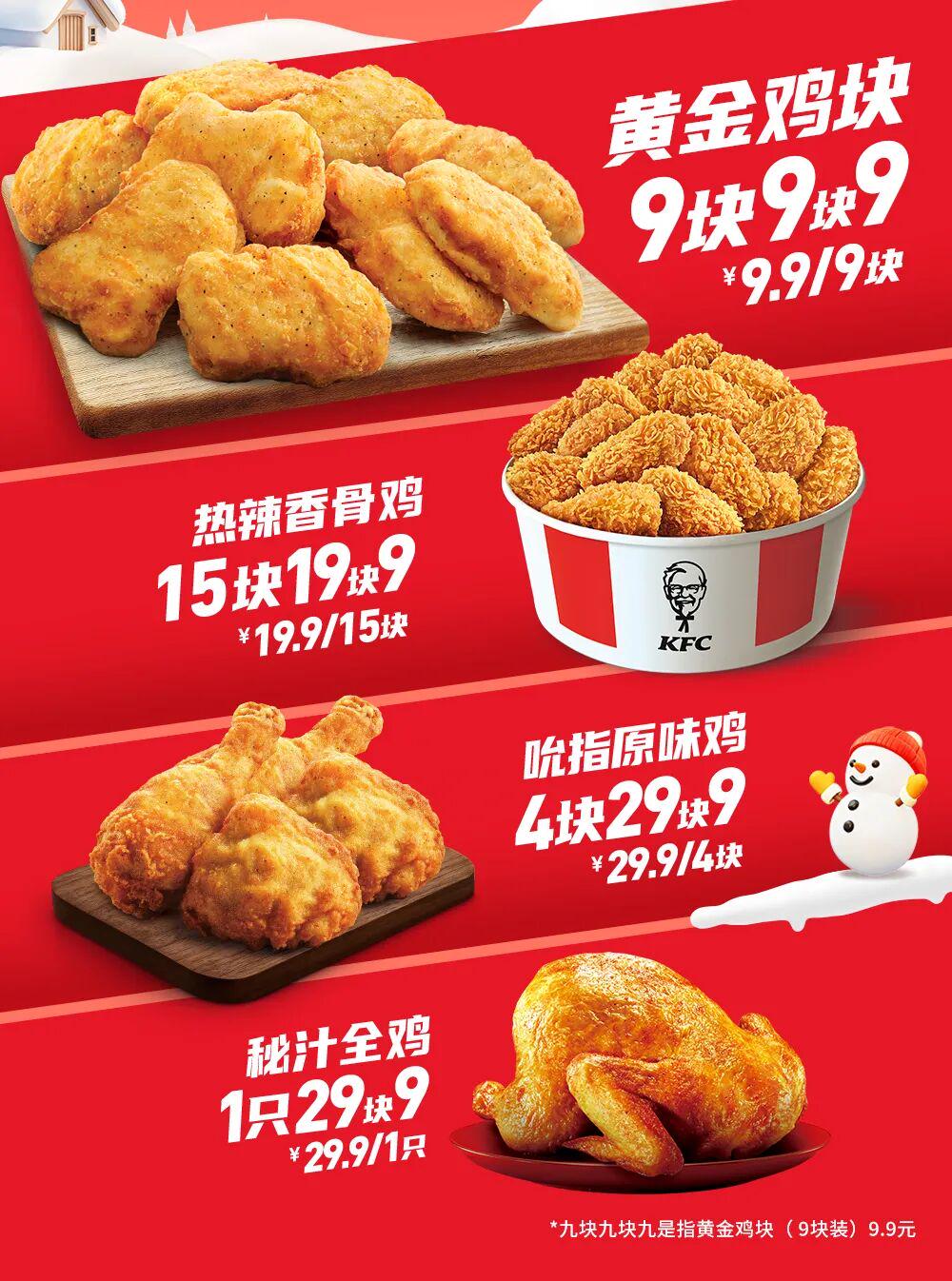 活动日期为2025年11月13日。每个活动日,黄金鸡块共限量700万块,热辣香骨鸡共限量1500万块,吮指原味鸡共限量180万块,秘汁全鸡共限量11万只,当日活动份数售完即止。活动渠道:堂食-自助点餐到店自取、外送-肯德基超级APP外送到家、外送-肯德基+微信小程序、外送-肯德基支付宝小程序。预约单不参加此活动。活动时间:9:30-23:00。活动地区:全国。堂食具体供应时间以餐厅实际营业时间为准,仅限有此产品供应的部分肯德基餐厅,交通枢纽、旅游景区、西藏自治区的餐厅及精选餐厅等部分餐厅除外,具体情况以餐厅餐牌公示为准;外送部分送餐区域不供应此产品,详情以输入地址后显示的菜单及送餐时间为准。外送费及打包服务费需自理。每单每个优惠套餐仅限购买1份。除推广产品外,其他物品仅做装饰目的,图示内容仅供参考。产品、周边、玩具及包装以实物为准。不与其他优惠共享。堂食、肯德基宅急送自有渠道、第三方外卖平台外送渠道、甜品站、团购渠道、企业送渠道及其他渠道的产品组合、价格及优惠活动,以各渠道页面公示为准。