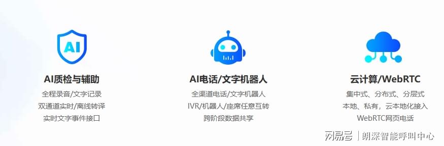 1)全面AI能力:在安全的前提下,您依然能享受最前沿的AI技术:从AI质检与辅助(实时监控,提升服务质量),到AI电话/文字机器人(7x24小时智能接待),功能一应俱全。