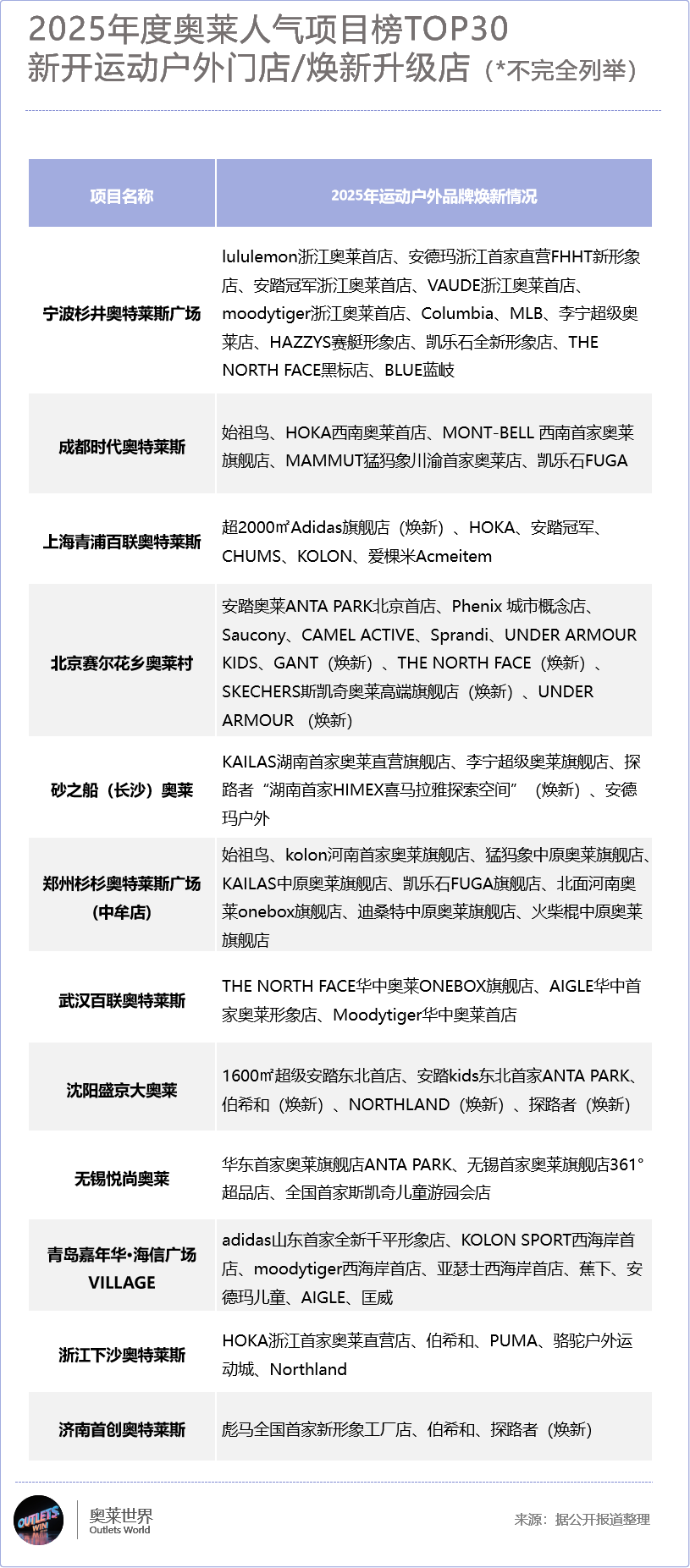 综上可知,上榜奥莱人气项目通过巩固高奢矩阵、抢占运动户外赛道风口、发力“超级大店”与国货标杆重磅新店型等,以高端化、专业化、体验化的零售组合策略,筑牢品牌护城河。
