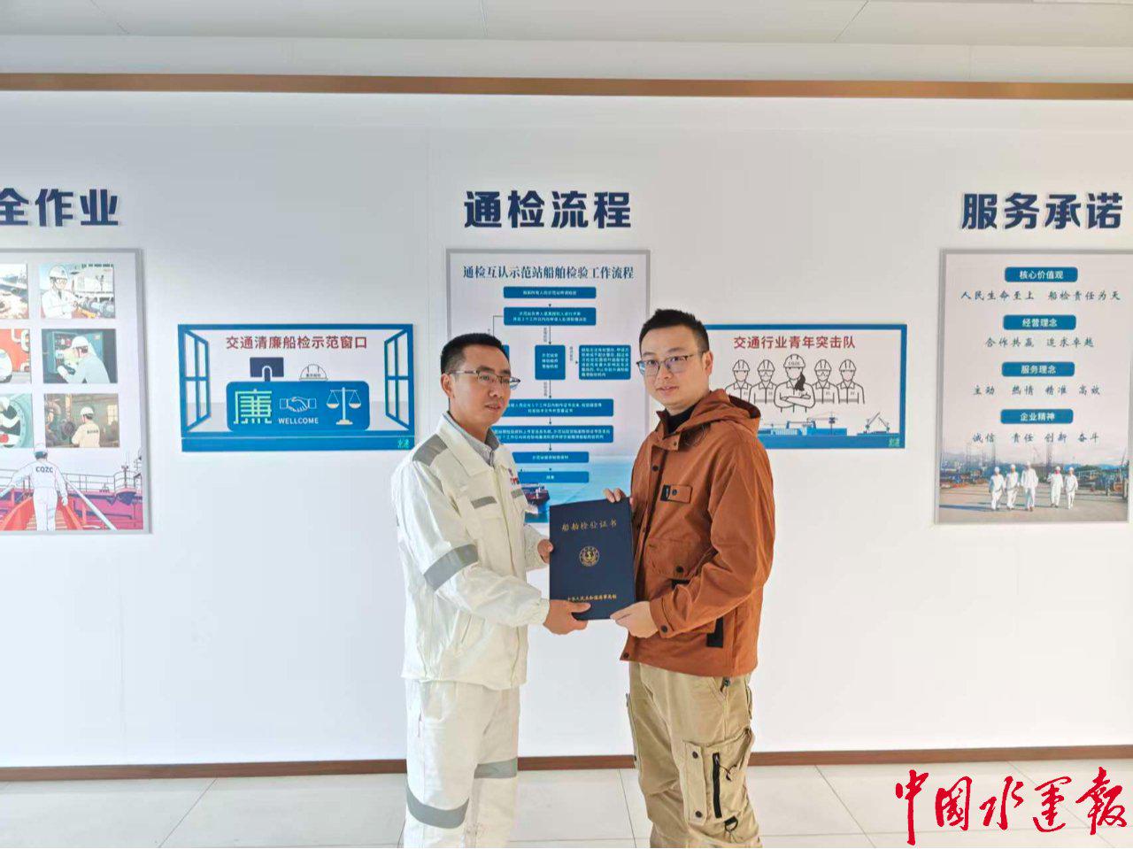 当天,示范站为首艘通检互认合格船舶颁发了检验证书。领取到崭新船检证书的船东成某某激动地表示:“以前检验要专门跑回船籍港,费时费力又费钱,现在到奉节锚地待闸期间可以就近申请检验、就近取得船检证书,感谢党和政府出台的惠民利民好政策,每艘船能节约成本近万元,真是省心又省力!”