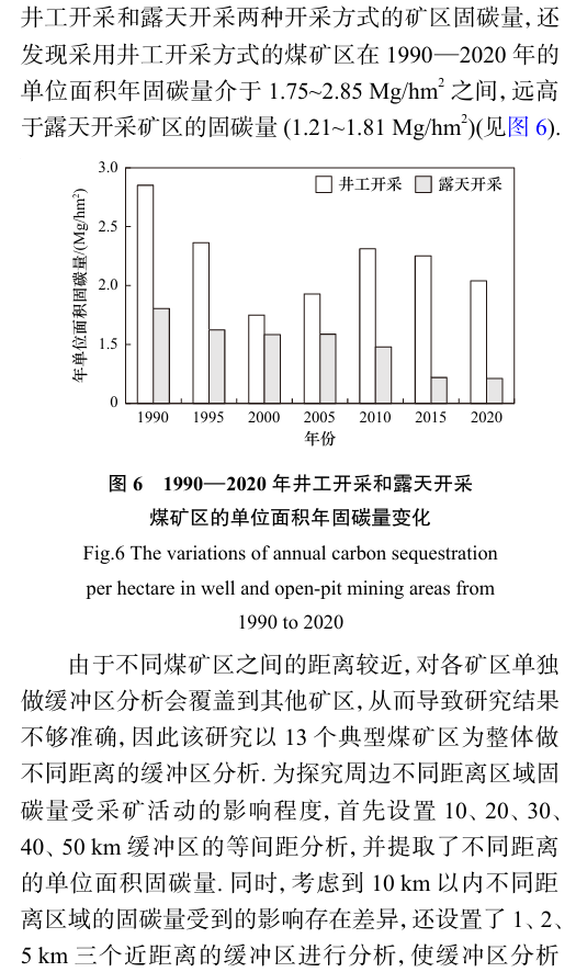 摘要: 明晰矿区土地利用变化及其对区域碳储量的影响,是“双碳”目标背景下推进矿区低碳减排和绿色高质量发展的重要手段. 基于多源数据集,使用InVEST模型、土地利用动态度、转移矩阵、缓冲区分析和灰色关联度等方法,识别了1990—2020年黄河流域上游13个大中型煤矿区的土地利用类型时空变化,评估了不同矿区及其周边不同距离缓冲区的固碳服务能力,并对二者的关联度进行分析,旨在厘清矿区土地利用变化对固碳服务的影响. 结果表明:①1990—2020年煤矿区土地利用类型主要以草地、未利用地、林地和耕地向城乡工矿居民用地转移为主,城乡工矿居民用地面积以288.8 hm2/a的速度持续扩张. ②1990—2020年不同时段城乡工矿居民用地的单一动态度均为正值,草地和未利用地则均为负值,其中2010—2015年各土地利用类型的综合动态度均较高,2015—2020年则均相对较低,并且露天开采方式矿区土地利用强度远高于井工开采方式. ③1990—2020年各矿区内单位面积年固碳量在0.7~4.1 Mg/hm2之间,在时间上呈先下降后升高再下降的趋势,并且在距离矿区50 km范围内,距离越远,平均单位面积年固碳量越高,影响程度逐渐下降. ④不同土地利用类型与单位面积年固碳量的平均关联度从高到低表现为未利用地>耕地>草地>林地>水体. 研究显示,黄河流域上游煤矿区开发过程中未利用地和耕地面积的变化是矿区生态系统固碳服务变化的重要原因.