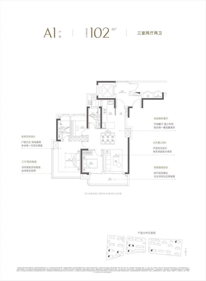 尤其是建面约102㎡3房户型,可以说是600万级3房的教科书式典范