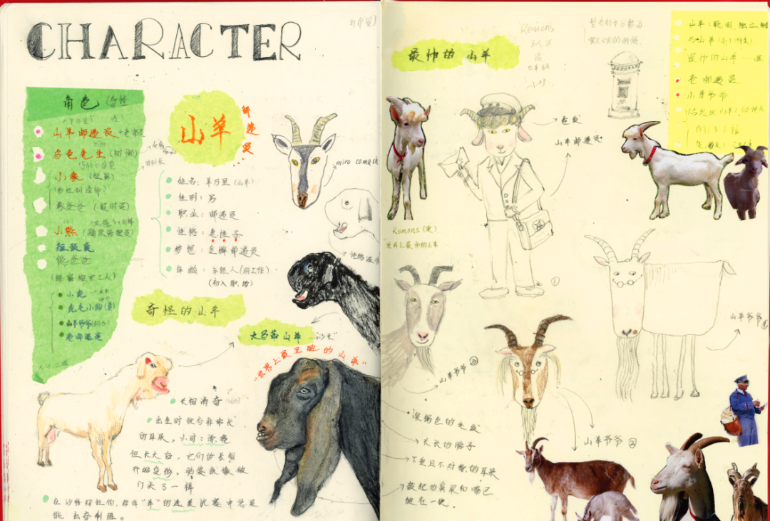 比如《长啊长的小镇》的主要角色羊万里的职业是一名邮递员,绘者会调研全世界的羊,有最丑的、最好看的、最奇特的,最终选择山羊作为主角,因为山羊可以飞檐走壁。