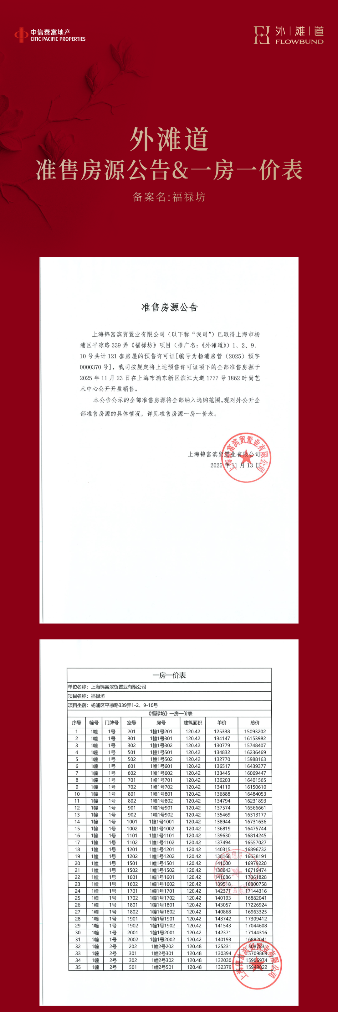 明日认购!杨浦内环滨江「中信泰富·外滩道」一房一价表发布,建面约120-190㎡江景大宅,均价13.85万/㎡
