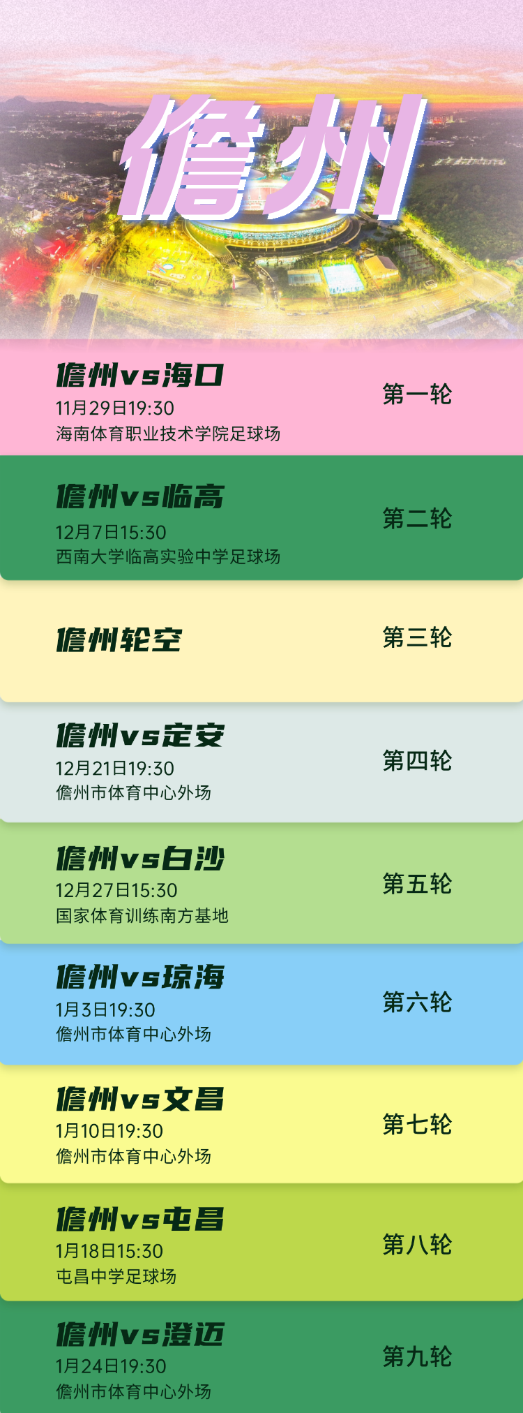 儋州队具体赛程表如下