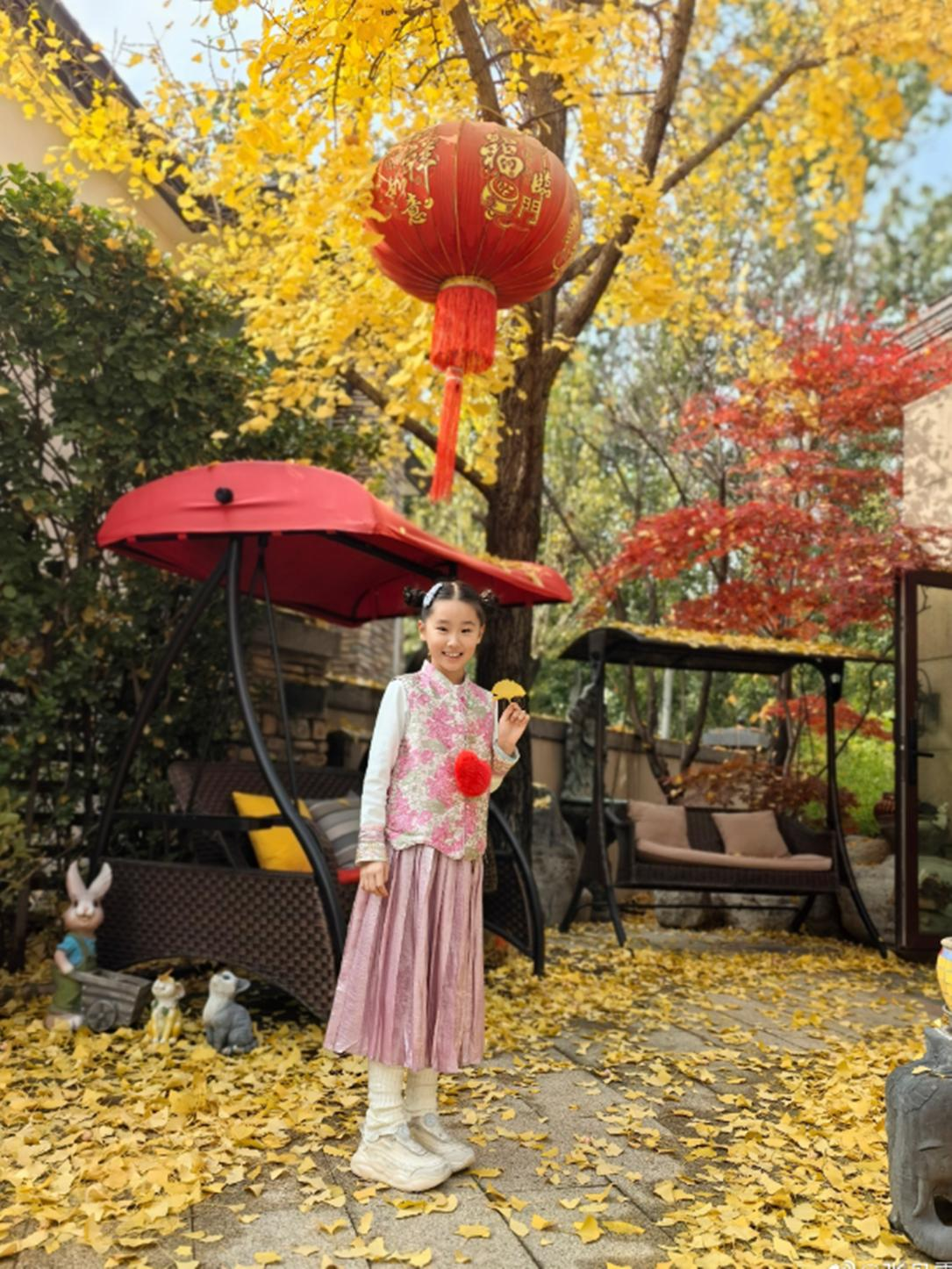 在院子里捡落叶的 Luna,有妈妈陪伴在侧,笑得一脸灿烂,幸福感扑面而来。跟着女儿的步伐记录院子秋景的张丹露,不难看出她在布置庭院时花费了不少心思。院子里除了各类树木花草,还摆放着许多精致的小摆件,宛如一座小型植物园,在这样的环境中生活,想必格外舒适惬意。