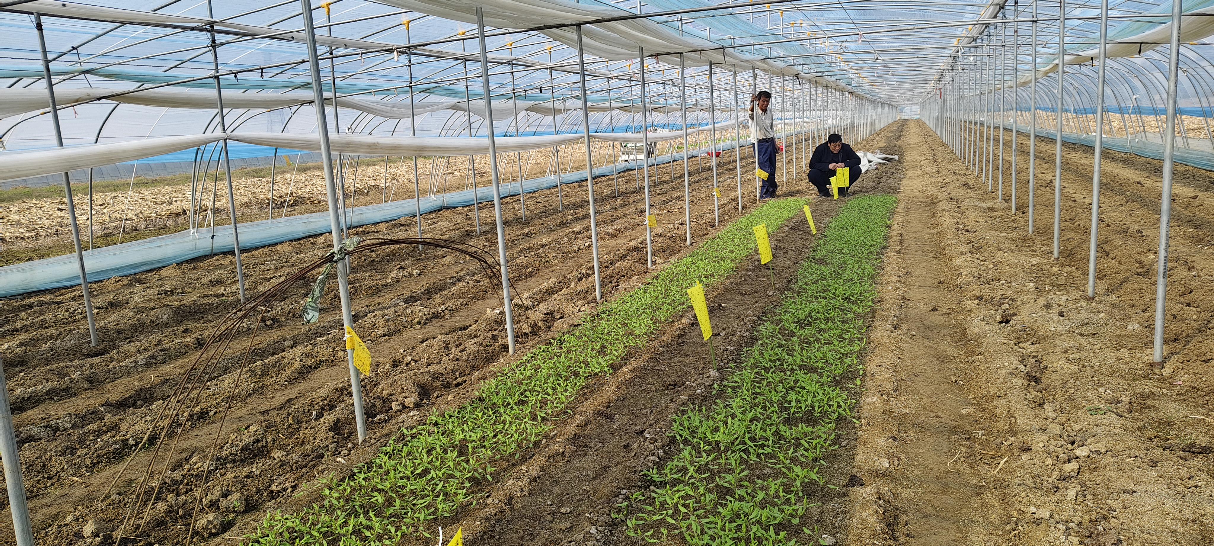 初冬季节,暖意洋洋。在河南省方城县博望镇向庄村的温棚蔬菜园区,一座座钢骨架冬暖式塑料大棚泛出银光。科技示范户向广军的育苗棚里“科技味”十足:挂满露珠的番茄苗生机勃发,金黄色的小板板格外抢眼。“种菜必须讲科学,不但产量高更要质量好,俺利用这小板板实行病虫害生物防治,种出的番茄达到有机、无公害,就连北京上海的大超市也来抢购, 俺种菜致富的路越走越宽啊!”