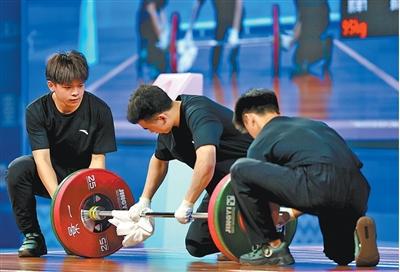 东莞石龙中学体育馆,工作人员对赛事器材进行清理维护。
