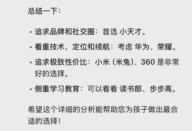 DeepSeek对各个品牌的儿童手表作出以下评价: