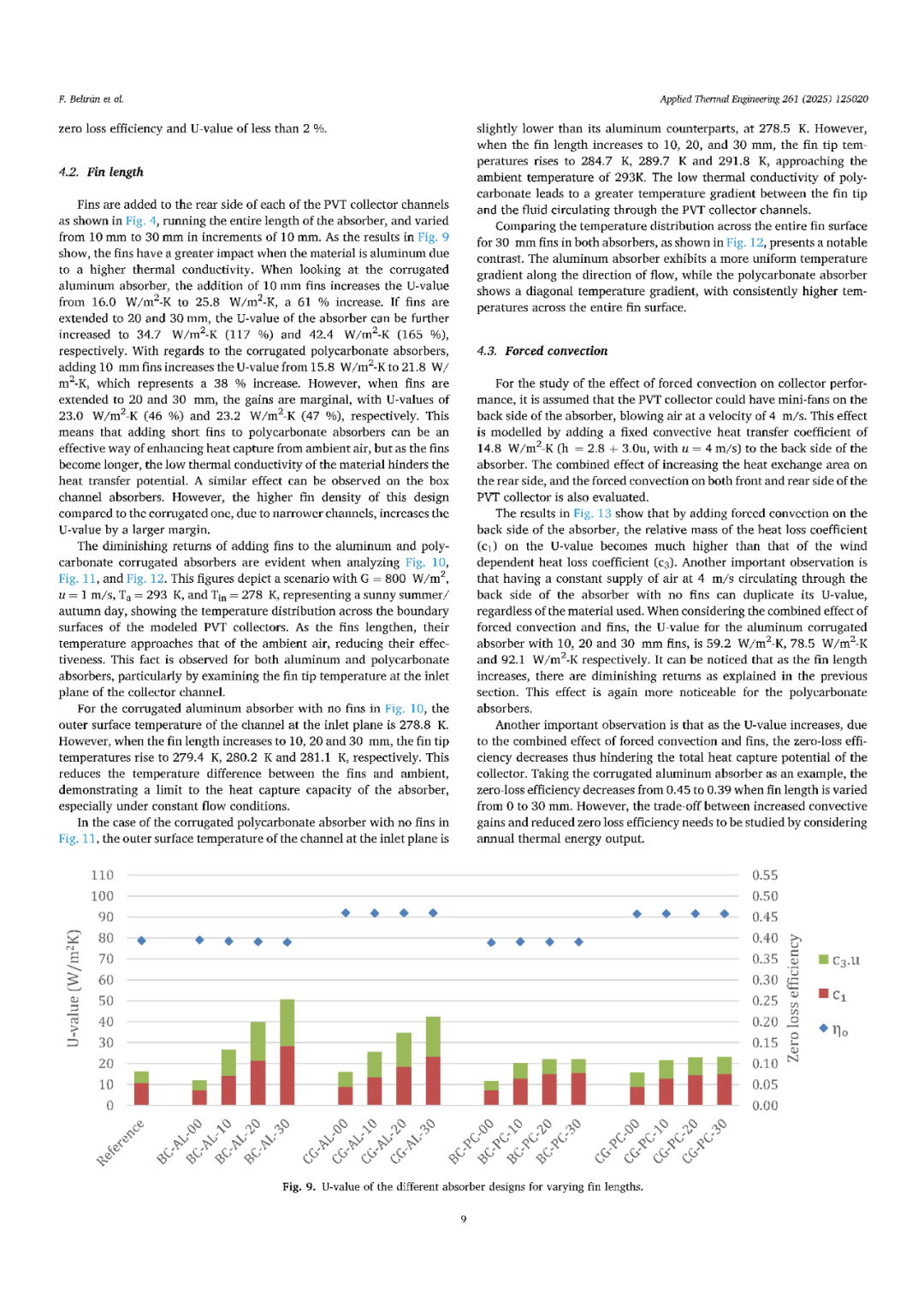 通过 4 m/s 的微型风扇实现的热吸收器背面的强制对流显示出巨大的影响,将 U 值提高了约 100%。这超过了添加翅片的影响,尽管成本效益分析被认为有必要评估强制对流的实施。
