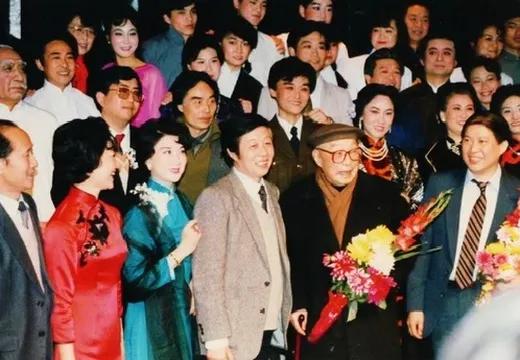 话剧《游园惊梦》,第一排华文漪(左三)胡伟民(左四)俞振飞(右二)白先勇(右一);第二排余秋雨(左二)周本义(左三)