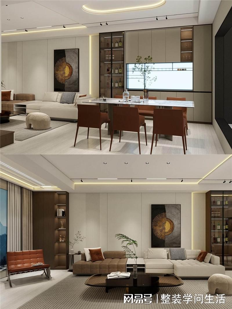 入户即景,定制柜体收纳展示两不误!一盏灯、一方景,归家仪式感瞬间到位。水墨纹理漫染墙面,留白与渲染平衡有道!单幅or组合设计,搭配定制柜各有千秋。灯带勾勒远山云雾,洽谈氛围舒缓从容!顶墙光影一体,香盛团装设计让客厅温柔不语。