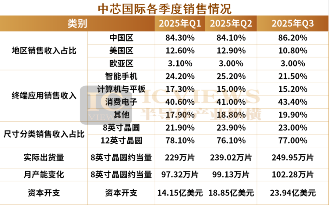 从产能及出货量来看,折合8英寸标准逻辑,中芯国际第三季度月产能达到102.28万片,突破百万片;销售晶圆数量增至约249.95万片。