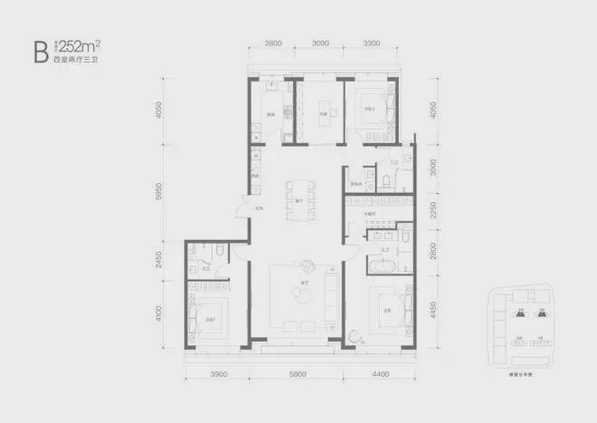 户型:主力为 249-317㎡;三居及 299-306㎡四居