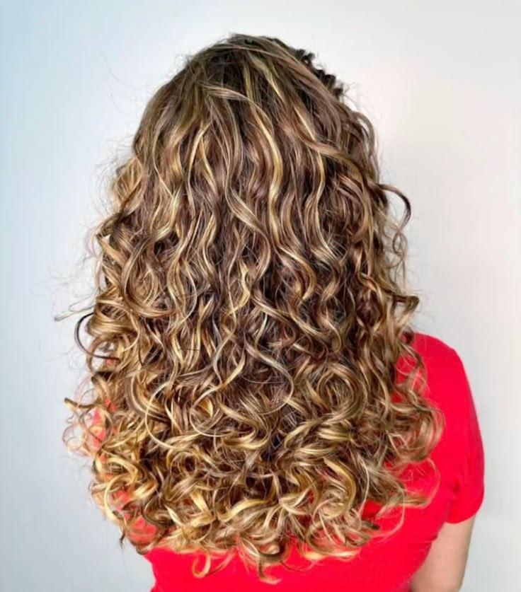 当下最火的搭配是“深棕底色+金棕/奶茶棕挑染”:深棕底色保留了头发的质感,避免浅色显毛躁;而细碎的浅棕挑染,会随着卷发的纹理形成明暗层次,让原本平面的卷发瞬间“立体起来”。部分造型还会加入“渐变染”,发根深、发尾浅,既不破坏头顶的蓬松感,又能让发尾更轻盈,尤其适合长发人群。