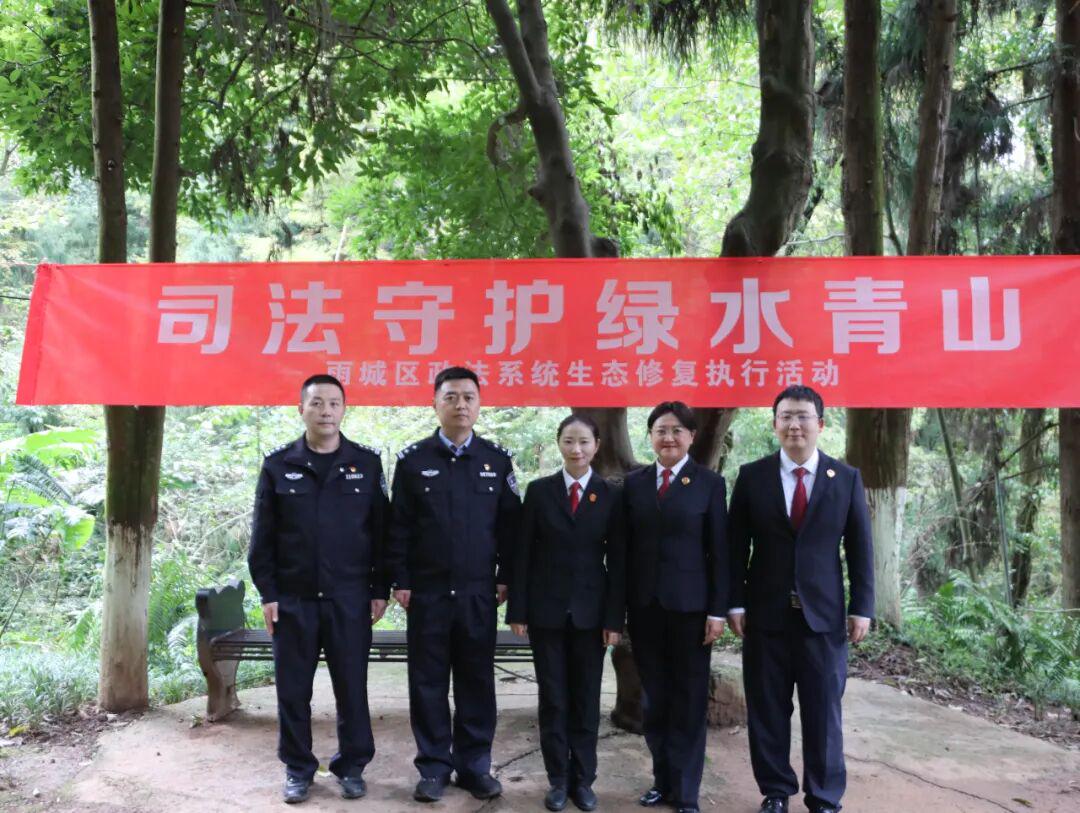11月13日,雨城区法院联合区检察院、区公安局、区林业局等多个部门,在张家山共同开展了一场以“司法守护绿水青山”为主题的生态修复执行活动。对一起非法盗采国家保护植物刑事附带民事公益诉讼案进行“补种复绿”现场执行。