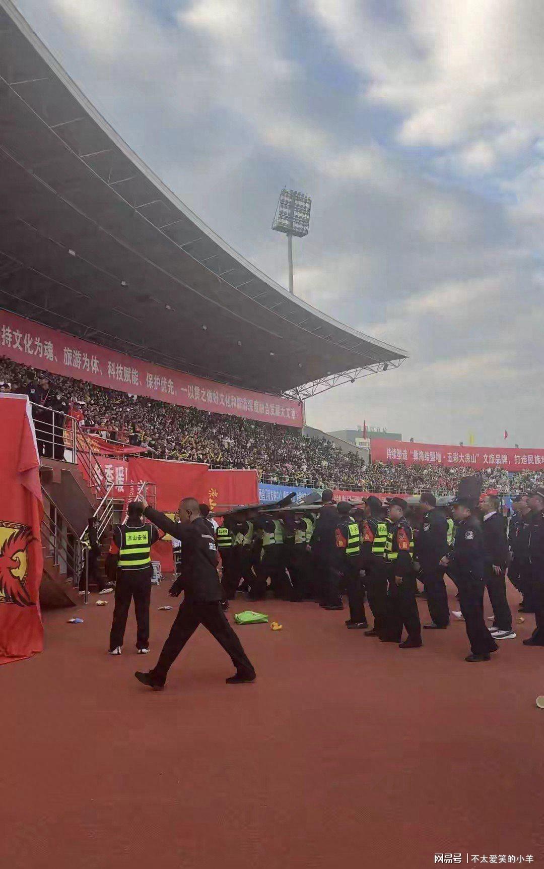 比赛结束后,凉山主场球迷情绪激动,在看台上齐声高喊“黑哨”。可能就是在这种气氛下,球员一时冲动做出了不理智行为。
