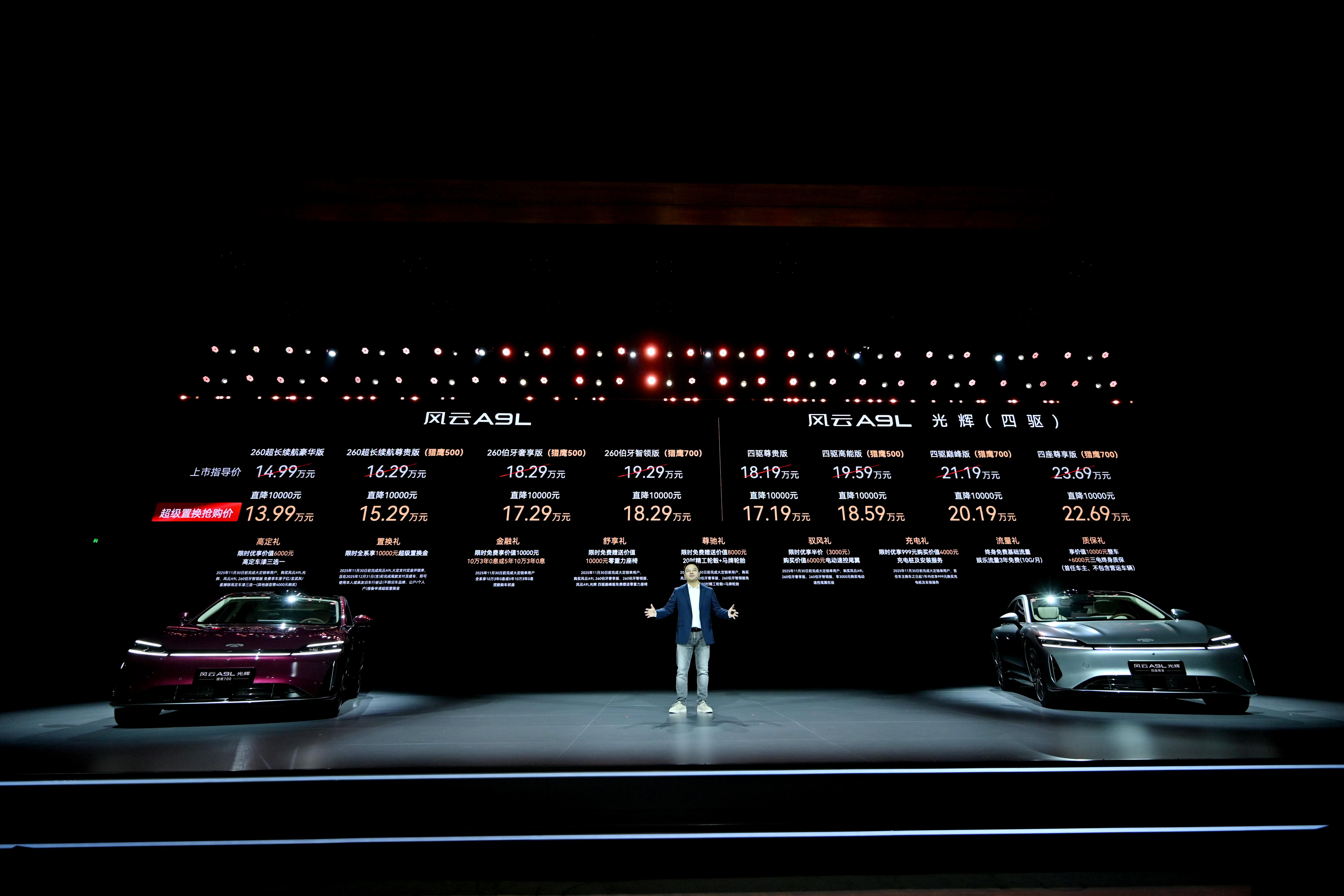 2025年11月15日,"进化" 风云 ( 参数 丨 图片 )A9L光辉(四驱)全球上市发布会在重庆广阳岛国际会议中心隆重举行,本次上市共推出四款版型,正式售价为17.19万元起,共推出四个版本车型,其中四驱尊贵版售价17.19万、四驱高能版( 猎鹰 500)售价18.59万、四驱巅峰版(猎鹰700)售价20.19万、 四座尊享版(猎鹰700)售价22.69万。并同步推出"九大购车权益",涵盖高定、置换、金融、舒享、 尊驰 、驭风、充电、流量、质保多重礼遇,为中国豪华汽车市场再次立下全新标杆。