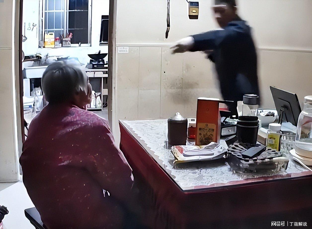 55岁穿着一身西装的男子杨某中,暴打92岁老母亲陈某琴。