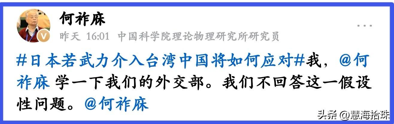 何老让学外交部,自己不妄议这类只是假设没有实际发生的问题,难道不对吗?