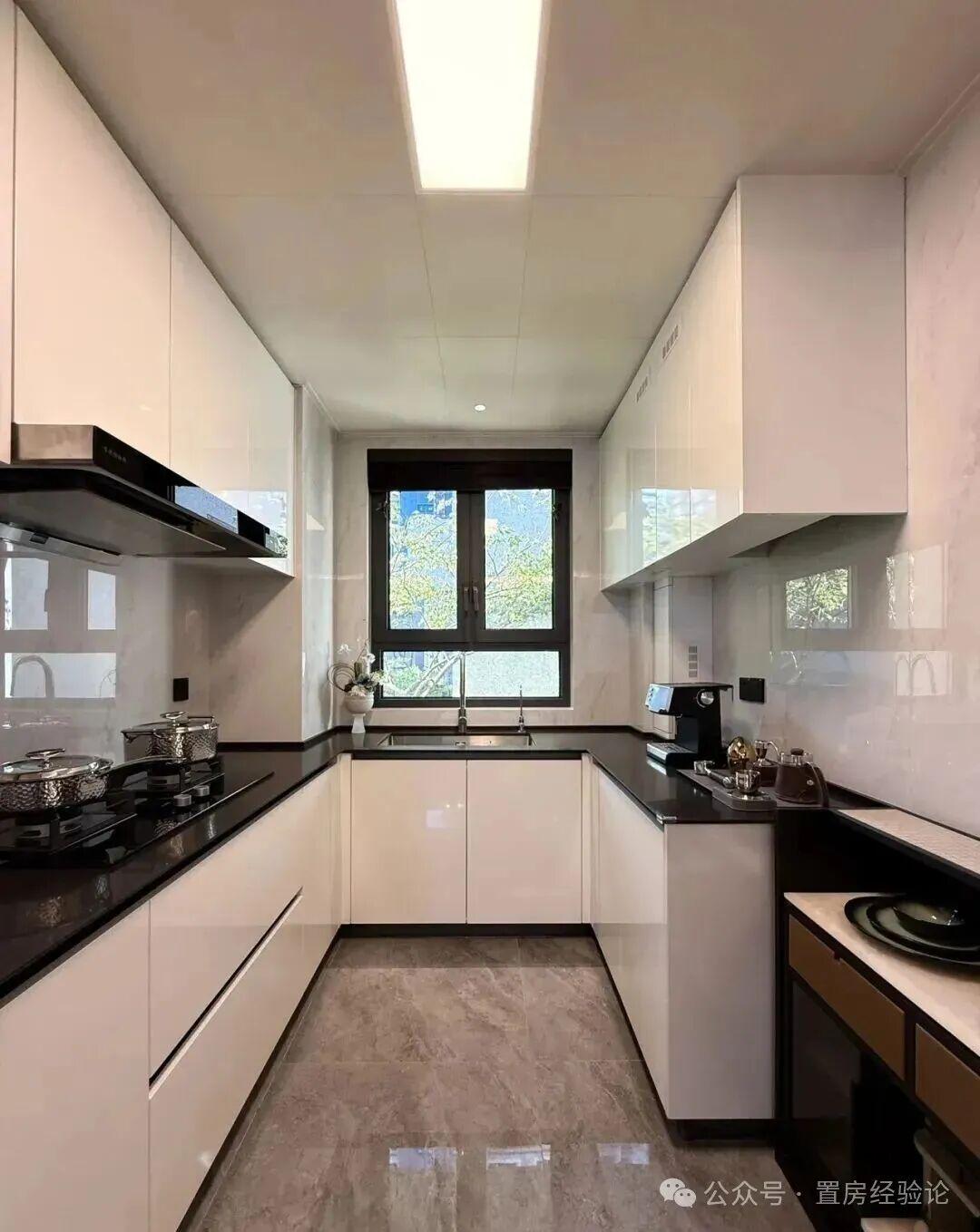 除了保证空间内部的新鲜空气流通,转角飘窗也吸纳更多的采光,搭配外部的园林景观设计,大大提升了居住的舒适性。厨房均设有舒适尺度的窗,从细节处提升居家品质。