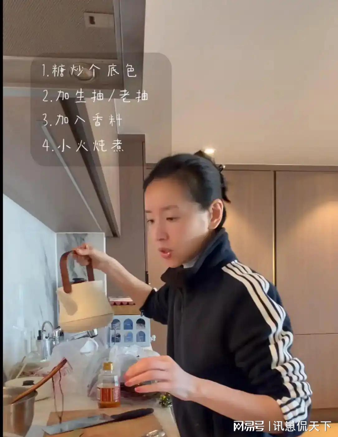 从董洁的视频来看,她一大早就跑到厨房忙着准备家人的早餐。
