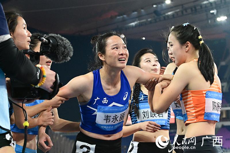 广西名将韦永丽冲过终点。人民网 雷琦竣摄