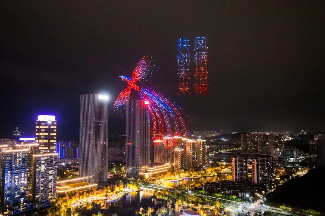 活动最后,无人机编队带来科技光影秀《一群人和一个城的故事》,以夜空为幕,绘出快递人与桐庐共成长的动人画卷。