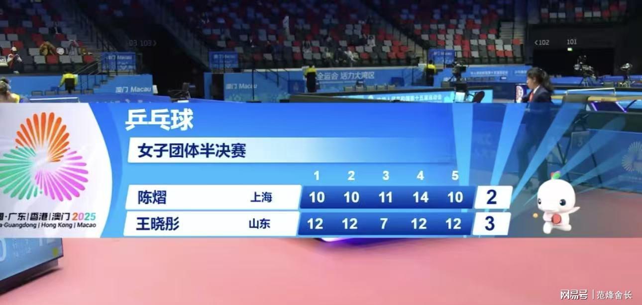 来到决胜盘,山东队的陈梦对阵上海队的削球选手杨屹韵,打削球最考验一名球员的基本功,而陈梦作为连续两届奥运女单冠军,基本功是没有任何问题的,结果陈梦3-0战胜杨屹韵,至此这场比赛一共耗时4小时12分钟,最终山东队3-2战胜上海,晋级女团决赛!