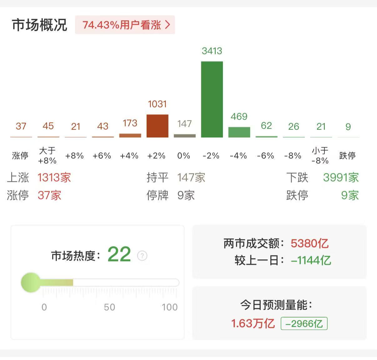 财联社11月19日电,据财联社盯盘数据显示,开盘半小时,沪深两市成交额突破5300亿,较昨日此时缩量超1100亿,预计全天成交金额超1.6万亿。