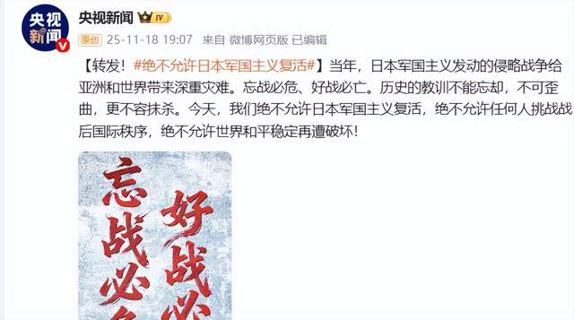 2025年11月18号晚上19:07,央视新闻发布消息: