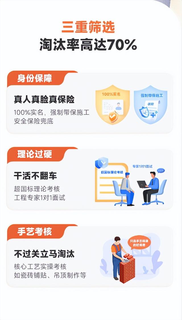 为了保证施工质量,当家APP对平台上的工匠实施了严格的认证体系。工匠必须经过培训认证才能接单。