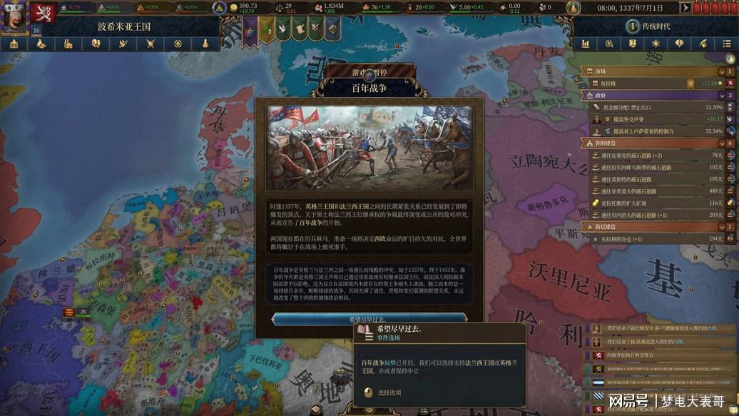不同于p社“四大名著”里的其他三部:《钢铁雄心》中只有针对战争的重演,《维多利亚》只针对经济的模拟,《十字军之王》中,只专精于复杂的政治体验,作为p社的长子,《欧陆风云》系列一直以来都是集大成者。