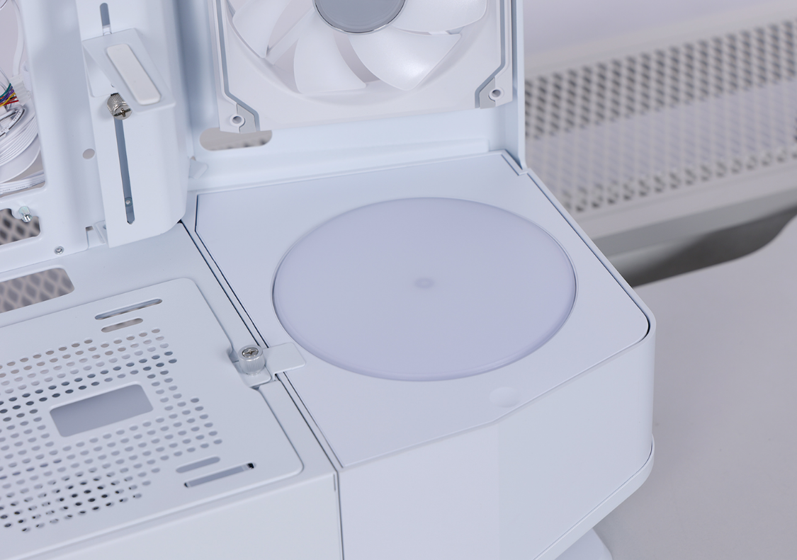 兼容性方面,机箱最大支持E-ATX主板,并支持ATX规格的BTF背插式主板。显卡安装限长420mm,PCIE插槽模块支持整体切换至竖装模式。散热方面,风冷安装限高180mm,支持顶置360侧置280水冷,最大可安装9把120mm规格散热风扇。机箱顶部与电源仓上方风扇支架均采用可拆模块化设计,可以有效降低装机难度。机箱侧板、尾部预装了140mm规格的骨伽星链积木风扇(1正+2反),电源仓前部的DLC仓室中还预装了带1把骨伽DF120反叶版风扇的散热模块。此外,还能自选旋转台DLC模块,将机箱打造成与众不同的硬件展示柜。