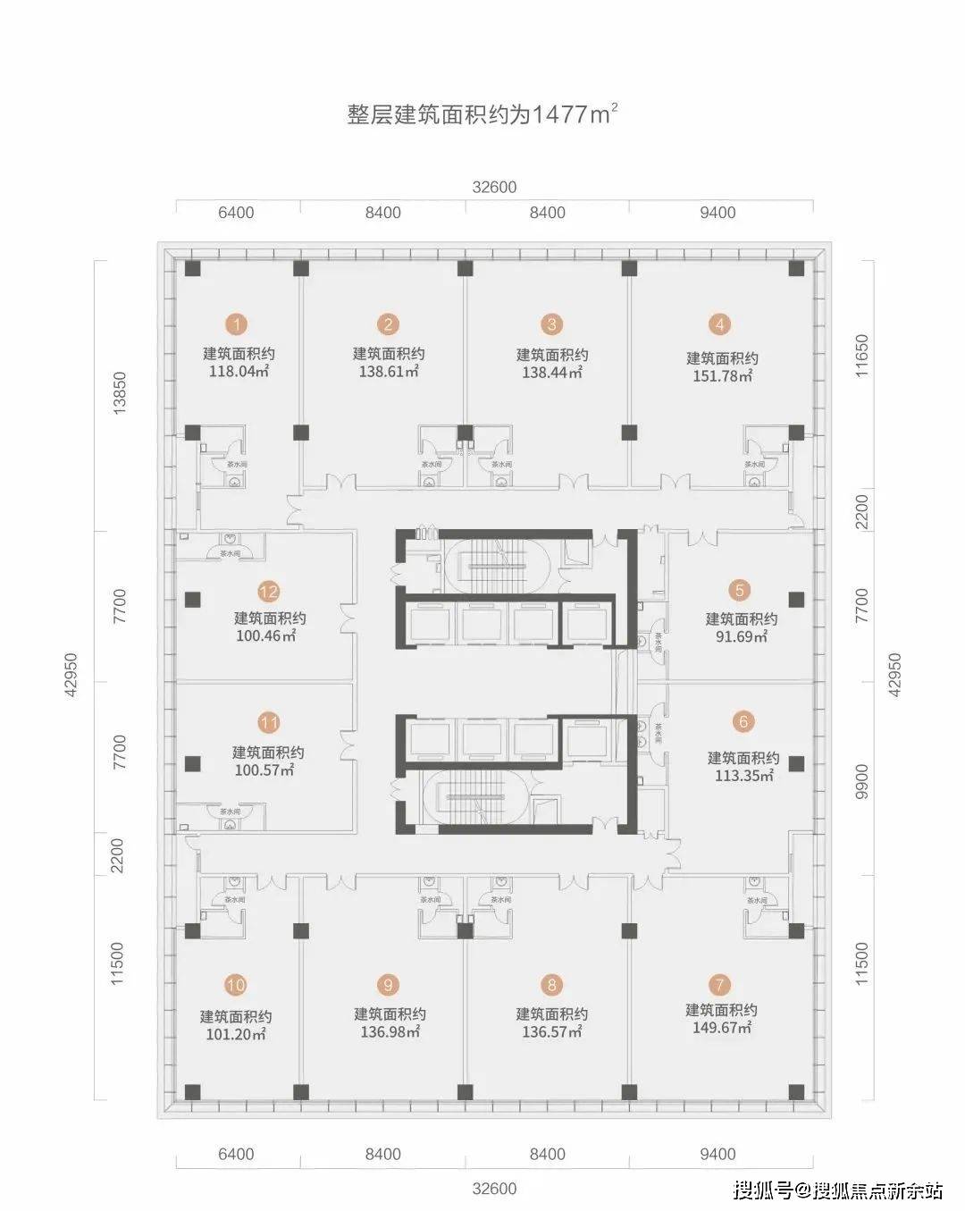 标准层面积:约1480㎡