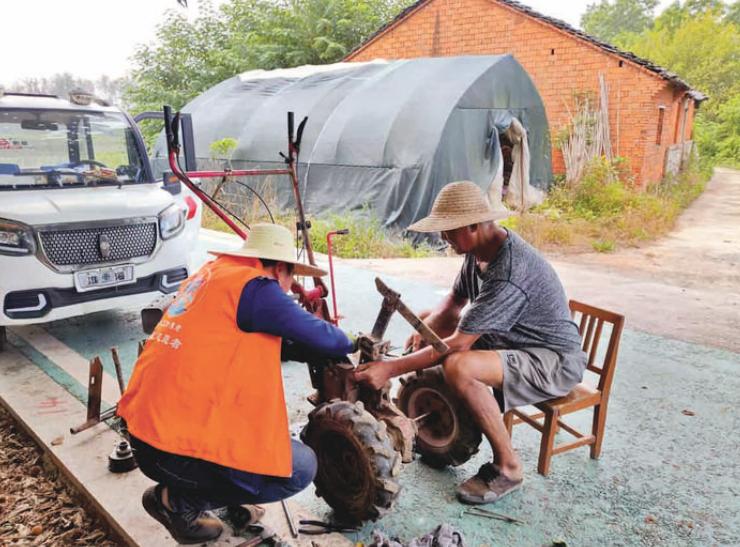 郊区慈善志愿者为农村老人免费上门修农机。郊区民政局供图