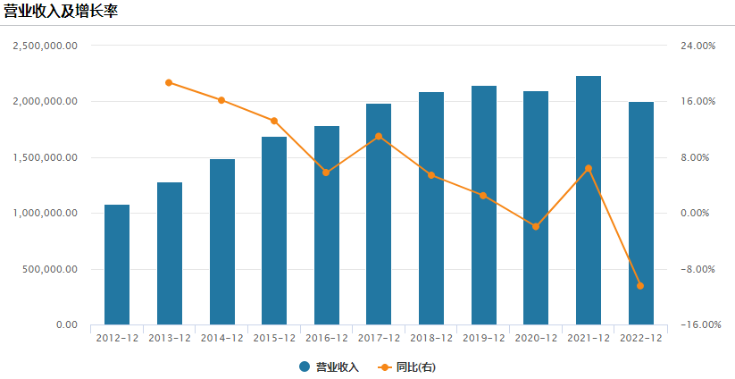 从财务数据来看,达利食品的“下坡路”始于2022年。根据财报,2021年企业营收达到历史峰值的222.94亿元后,2022年迅速跌至199.57亿元。