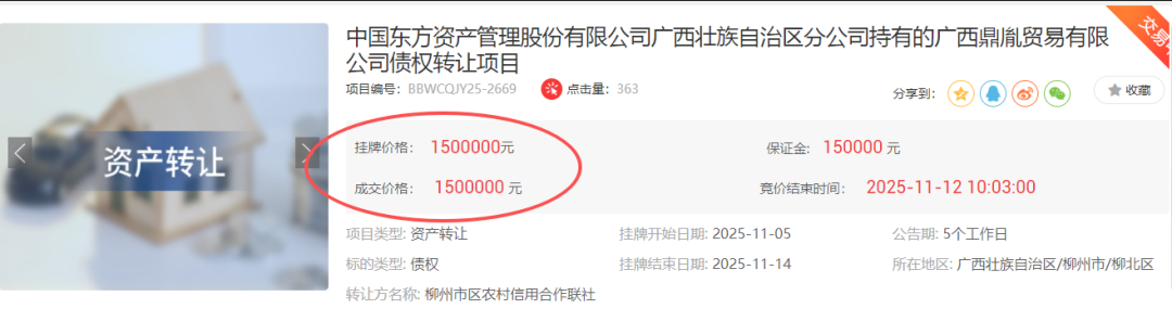 近日,北部湾产权交易所上的一宗债权转让项目交易引发了我的好朋友九伍二柒的关注。