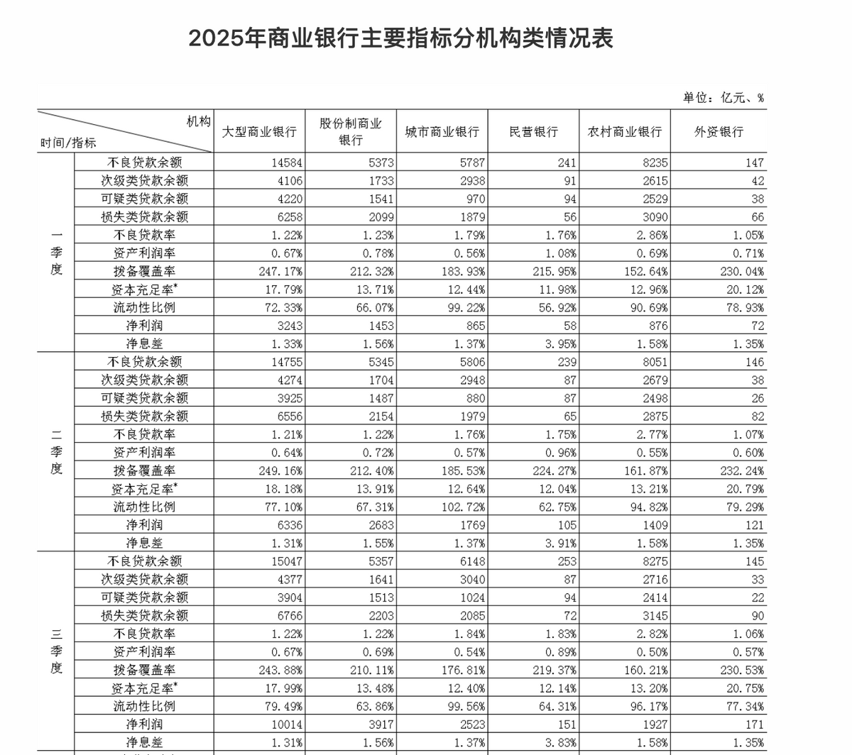 从贷款分类看,民营银行的损失类贷款从一季度的56亿元增至三季度的72亿元,增幅达28.6%,表明部分贷款已形成实际损失,资产质量面临考验。