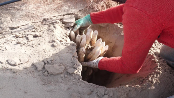沙雅县盖孜库木乡盖孜库木村村民徐双平说:“我是从10月中旬开始开挖的,到现在已经挖了1个月了,每天可以挖2亩左右,产量就400-500公斤,每公斤1元钱,收入还可以的。”
