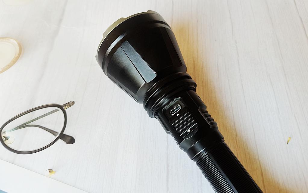 手电颈部采用了充电滑盖设计,滑盖下带有Type-C充电接口,支持快充,可实现1.5h即可充满电,而且充电也很方便,这也是目前主流的设计;另外充电口覆盖了硅胶密封垫,可以更好的防水。