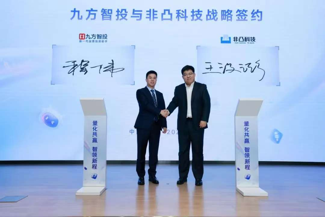 郑昊提及,“星级服务”并非静态产品,未来将持续推进迭代优化,深化生态合作维度,聚焦个人投资者需求痛点,不断完善服务内容与形式,致力于提供更智能、更适配、更便捷的金融科技服务,成为个人投资者投资路上的专业伙伴,助力用户提升投资能力、优化投资体验。发布会尾声,九方智投总经理程伟与上海非凸智能科技有限公司联合创始人、CEO王浚澎共同完成战略合作签约,标志着双方在量化投资技术研发、服务落地等领域的合作迈入新阶段,强强联合推动量化普惠生态进一步完善。