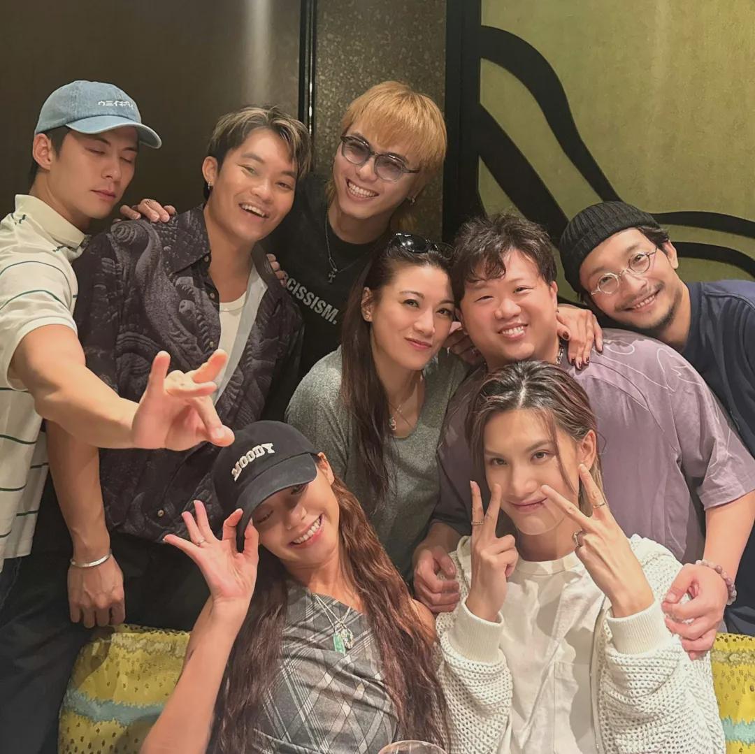 廖碧兒與ViuTV男團MIRROR和ERROR成員攬實影相。(IG圖片)
