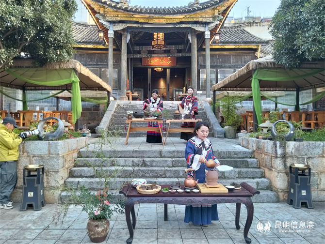 贵州会馆里的马帮烤茶展示。记者江枫/摄
