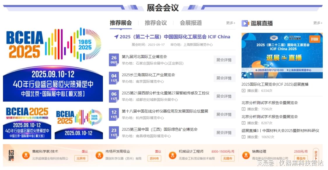 平台实时发布科学仪器行业动态、市场数据、厂商报道、政策法规、会展新闻、人物访谈、招标中标信息等内容,覆盖石油/化工、制药/生物制药、电子/锂电/半导体、环保/水处理、医疗卫生、仪器仪表、材料/纳米、新能源/传统能源、食品/农残、通信工程/人工智能、金属/钢铁/地矿、机电/电器/机械、造纸/印刷/包装、玩具/生活用品、建材/家具、交通/汽车、纺织/印染等全领域,为用户提供决策参考与行业洞察。