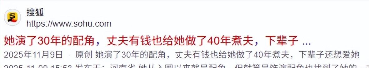 1.搜狐网:她演了30年的配角,丈夫有钱也给她做了40年煮夫,下辈子还想爱她