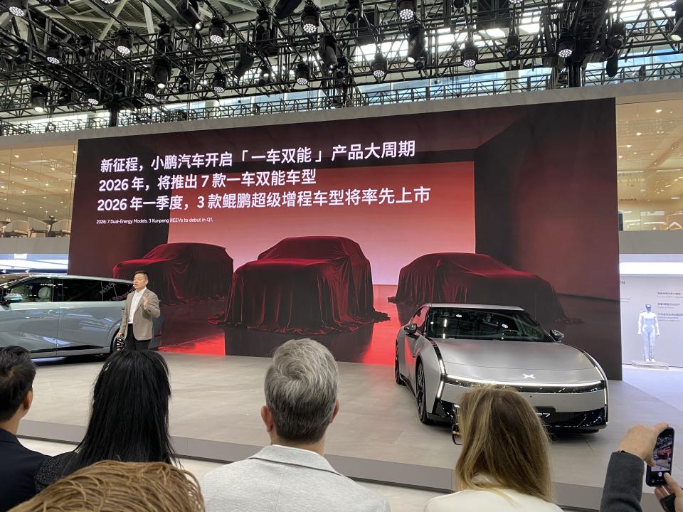 小鹏正式宣告告别“纯电单一赛道”,全面开启“一车双能”产品大周期。发布会期间,何小鹏宣布明年会推出七款“一车双能”车型,其中第一季度会率先上市三款鲲鹏超级增程车型。