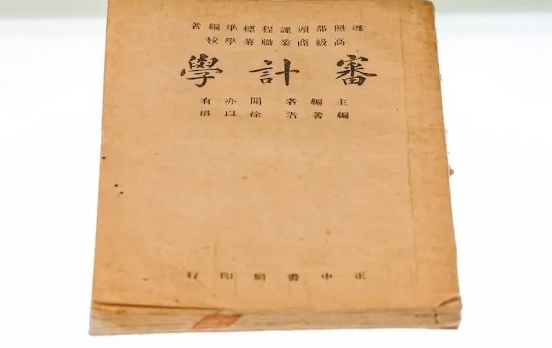 在对面展柜呈现了复旦老校友徐以楙的毕业证书,由复旦大学李登辉老校长钤印签发;以及徐以楙编著的《审计学》教科书以及手写日记等。据悉,徐以楙于1925年考入复旦大学商科会计系,这些文献资料由其曾孙徐志宏先生留存并捐赠。