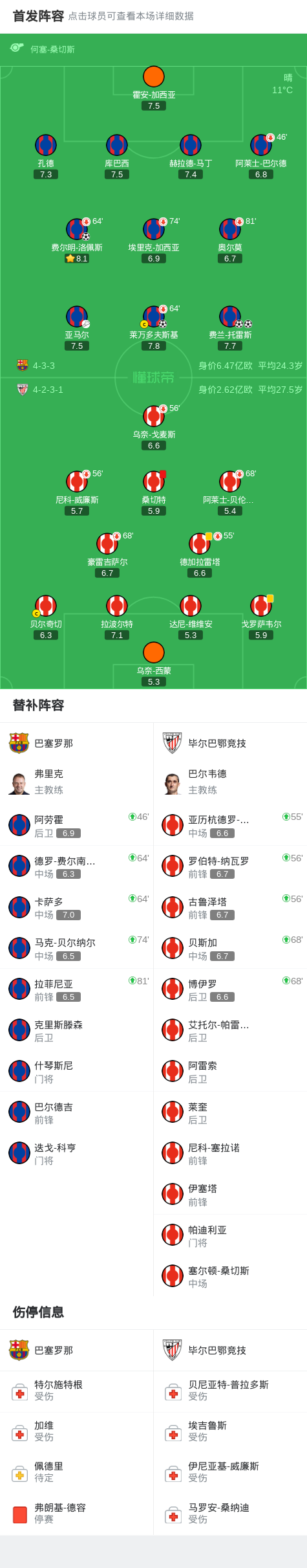第74分钟,埃里克-加西亚被换下,贝尔纳尔替补登场